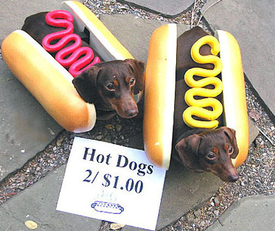 - No, no, we are NOT that kind of hot dog! Stop licking your lips like that!