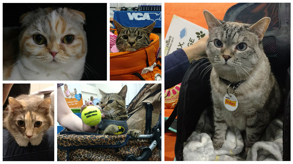 - Some of the amazing cats we met at BlogPaws 2017 (clockwise from top left): Luna, Sakie, Nala, Dexter and Sophie.