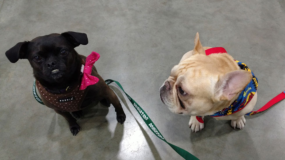2017 was our second year at the annual conference of pet bloggers organized by BlogPaws, a social media company dedicated to educating and inspiring online pet writers. DogWatch Social Media Strategist Jackie attended BlogPaws 2016 in Phoenix, AZ, and had such a great experience that this year, DogWatch decided to attend as a first-time exhibitor. DogWatch Marketing Manager Demie joined Jackie this year at the Sheraton Myrtle Beach Convention Center Hotel in Myrtle Beach, SC. There was another important addition to the team this year – Jackie’s dog Lucy (@lucy_with_the_underbite)! In her pink bowtie and DogWatch bandanna, Lucy was a big hit with all the BlogPaws attendees she met, and she enjoyed making many new friends, human and canine and feline, too!